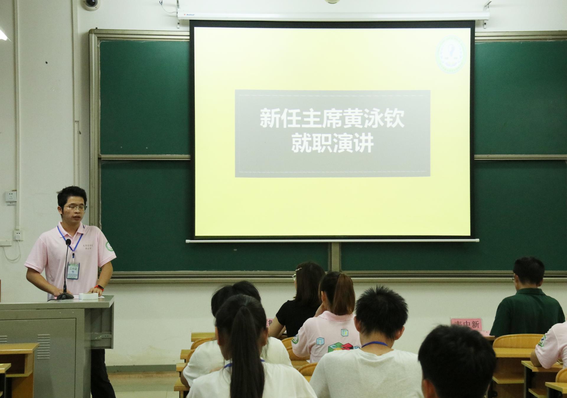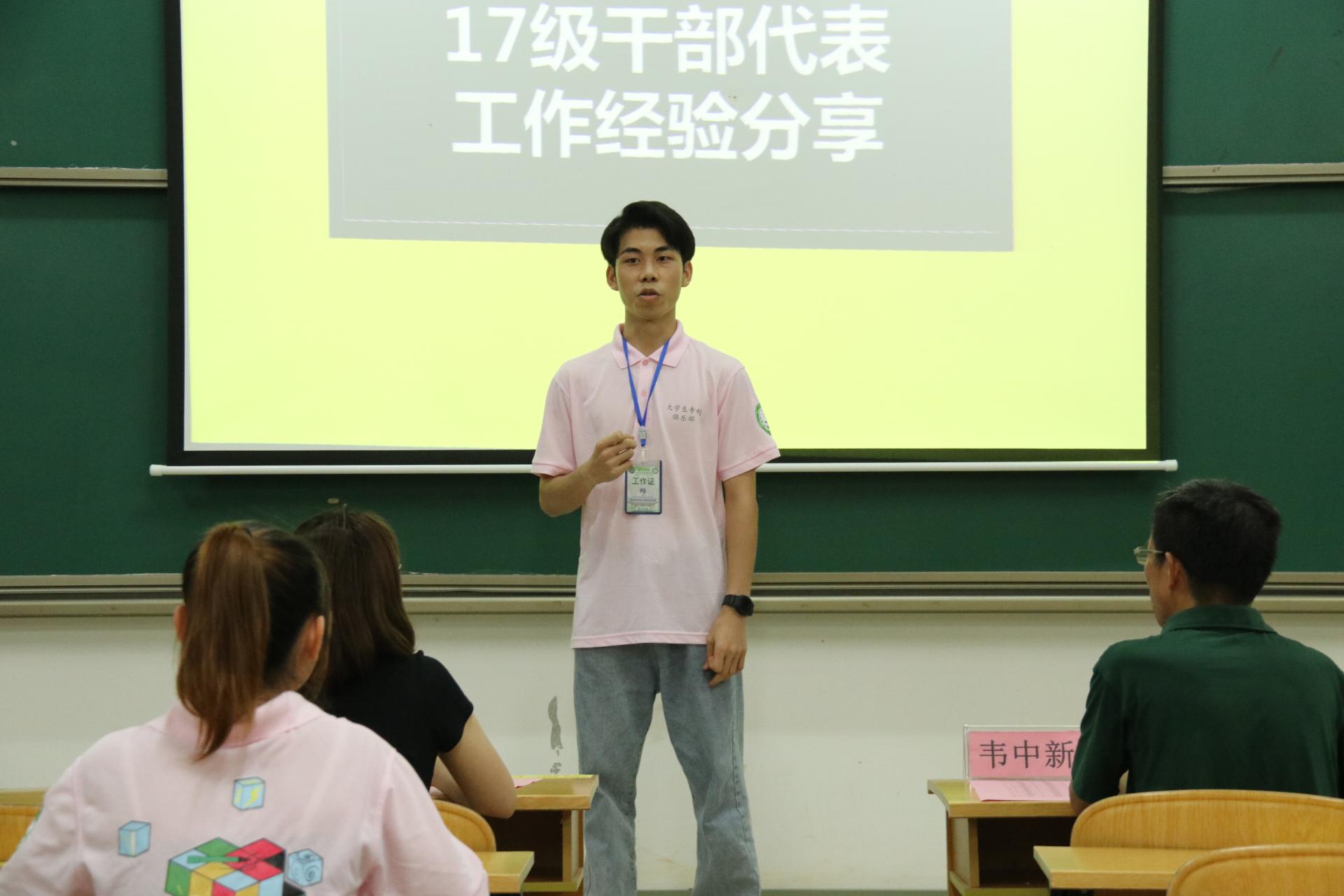 会议伊始,由主持人进行开场白,并介绍出席本次大会的领导、老师及专利俱乐部全体成员,由副主席韦碧泉宣读新任干部名单及授予新任干部会牌,并产生了南宁学院大学生专利俱乐部第四届委员。随后,会议进行到中间环节,新任主席黄泳钦、新任秘书长张玉凤及各新任代理部长做就职演讲,并对专利俱乐部的建设工作提出设想和展望,学生干部们的演讲让在场同学们热血沸腾,对俱乐部的未来充满期许。接着,17级干部代表滕枝藤、覃宏恩、韦碧泉、叶青青进行了他们的专利俱乐部工作经验分享,并鼓励第四届全体委员要积极创新,把创新想法付诸于实践。最后,韦中新副处长做了振奋人心的总结发言,充分肯定了学生干部们在俱乐部的建设和发展中所起的积极作用以及俱乐部所取得的优异成绩,同时也对同学们今后一年的学习和工作提出了新的要求和希望。