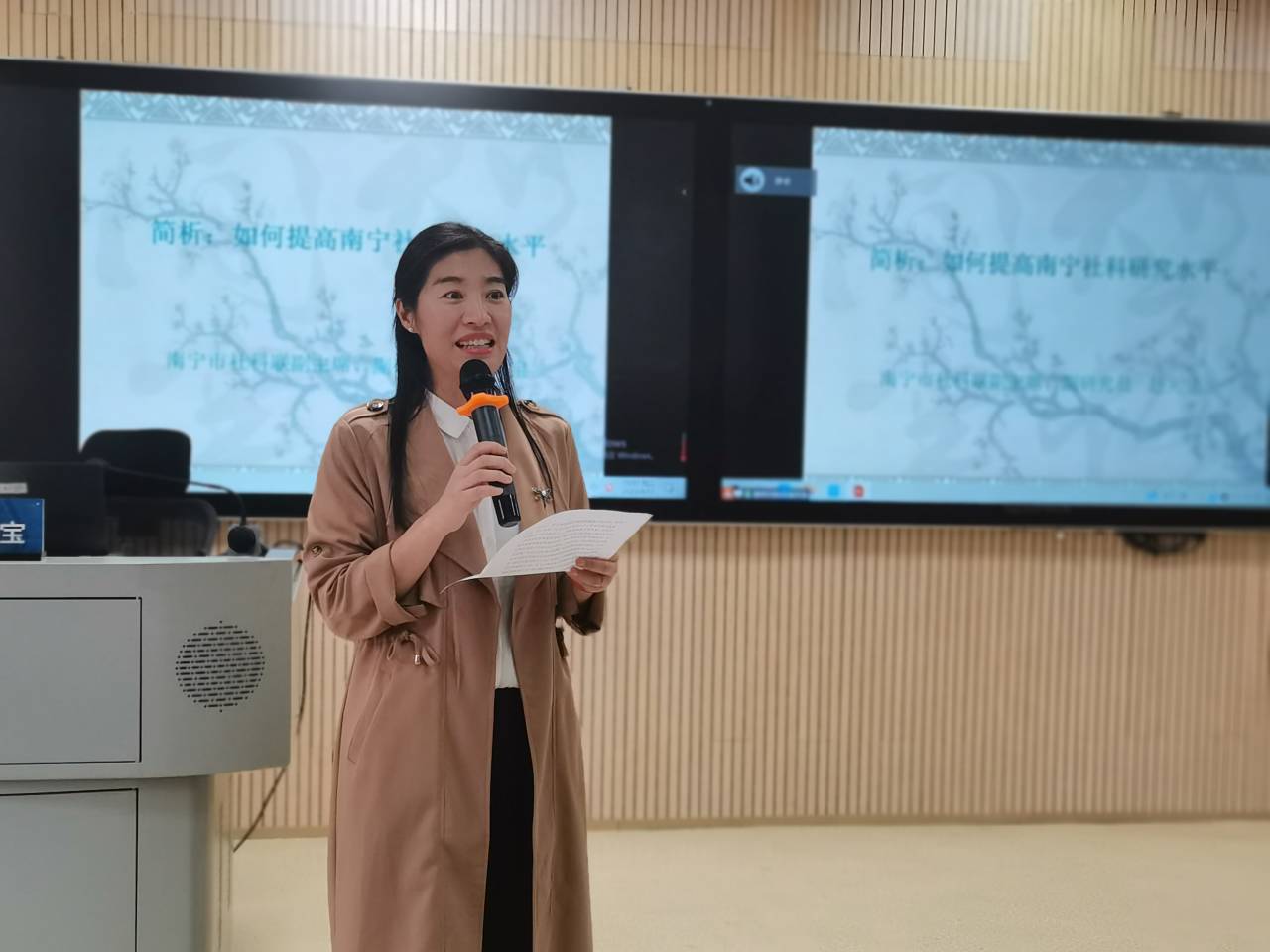 为提升教师的科研服务地方能力,助力学校社科教师提升研究水平,4月11日,南宁学院第48期“邕水敷文”学术讲座在行政楼123举行,本次讲座邀请了南宁市社会科学界联合会副主席赵天宝副研究员做《如何提高南宁市社科研究水平》的专题辅导,讲座由马克思主义学院院长董艳主持,马克思主义学院全体教师、南宁市社科项目负责人及课题组成员等参加了讲座。