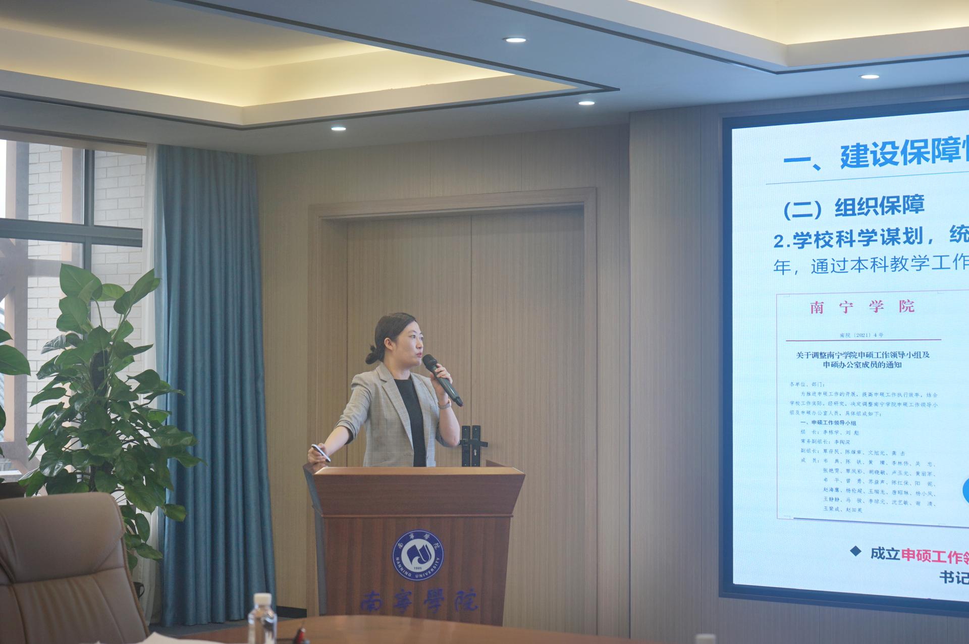 会上,科研与学科建设处张艳雯处长及5个培育点负责人对标《学位授权审核申请基本条件》分别围绕我校硕士学位授予单位建设及硕士学位培育点的建设保障、建设推进情况、现状与差距、主要问题与困难、解决措施汇报等多个方面进行报告。参会领导及来自广西大学、南宁师范大学多名检查评估专家组对建设单位及培育点的建设工作及中期进展报告提出了存在的问题和短板,并就学校民办高校的特点及区域特色出发,对特色优势、师资队伍、人才培养、科学研究等方面提出了有针对性的意见和建议。