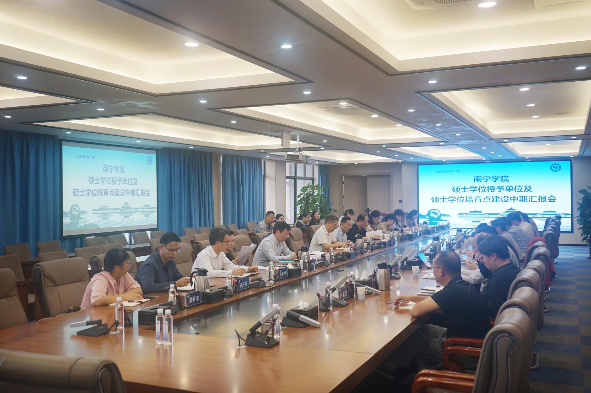5月11日上午,南宁学院在行政楼400会议室召开硕士学位授予单位及硕士学位培育点建设中期检查汇报会。学校副校长李陶深、广西大学等多名校外专家、科研与学科建设处、各依托建设学院院长、培育点负责人及相关职能部门负责人参加会议。学校副校长李陶深主持会议。