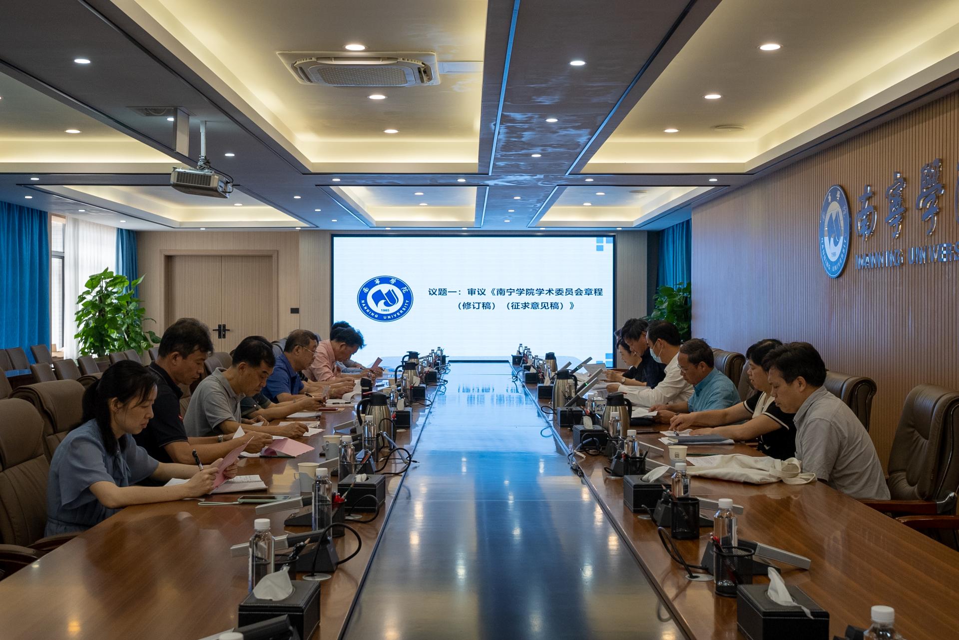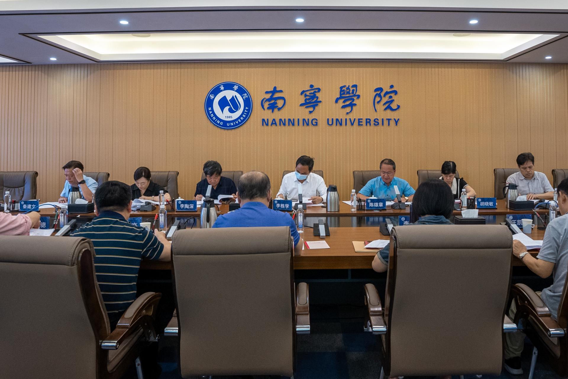 会议首先由主任委员李栋学介绍第二届学术委员会委员调整人员及情况。全体委员针对《南宁学院学术委员会章程(修订稿)(征求意见稿)》讨论并提出修改意见,进一步明确和规范学术委员会日常工作制度和职责。