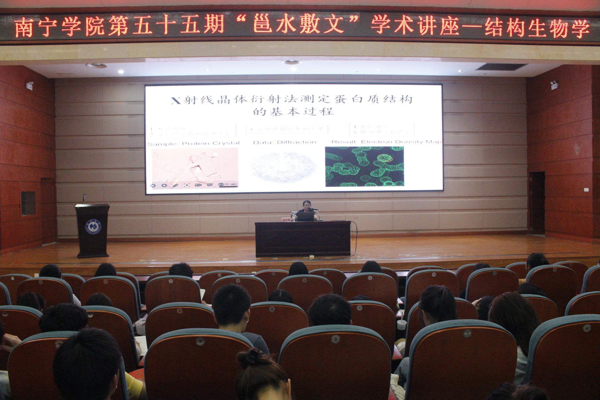 为营造浓厚的科研学术和良好的学风氛围,6月8日晚上20:00,南宁学院第55期“邕水敷文”学术讲座“结构生物学”在图书馆报告厅顺利开展,本次讲座邀请了广西科学院潘丽霞研究员主讲。本次讲座由食品与质量工程学院承办,学院在校学生和教师代表近500余人参加了讲座。
