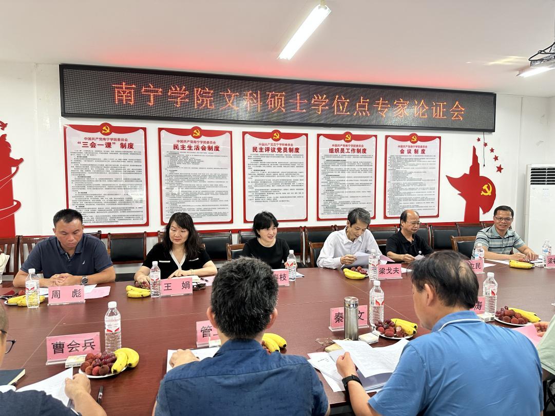 为进一步推进我校文科专业硕士学位立项单位及相关硕点建设,商学院于7月1日下午,在行政楼425会议室举办了南宁学院文科硕士学位点专家论证会。出席论证会的专家组成员有广西大学梁戈夫教授、李立民教授、韦德洪教授、谭春枝教授、梁权熙教授、王娟教授、曾海舰教授,数字广西集团智桂通科技有限公司周彪执行董事兼总经理。商学院汪涛院长、蒋丽君副院长,数字经济秦建文院长、管卫利执行院长、曹会兵副院长,艺术学院副院长蓝志军以及三个学院的科研骨干教师参加了论证会。论证会由汪涛院长主持。