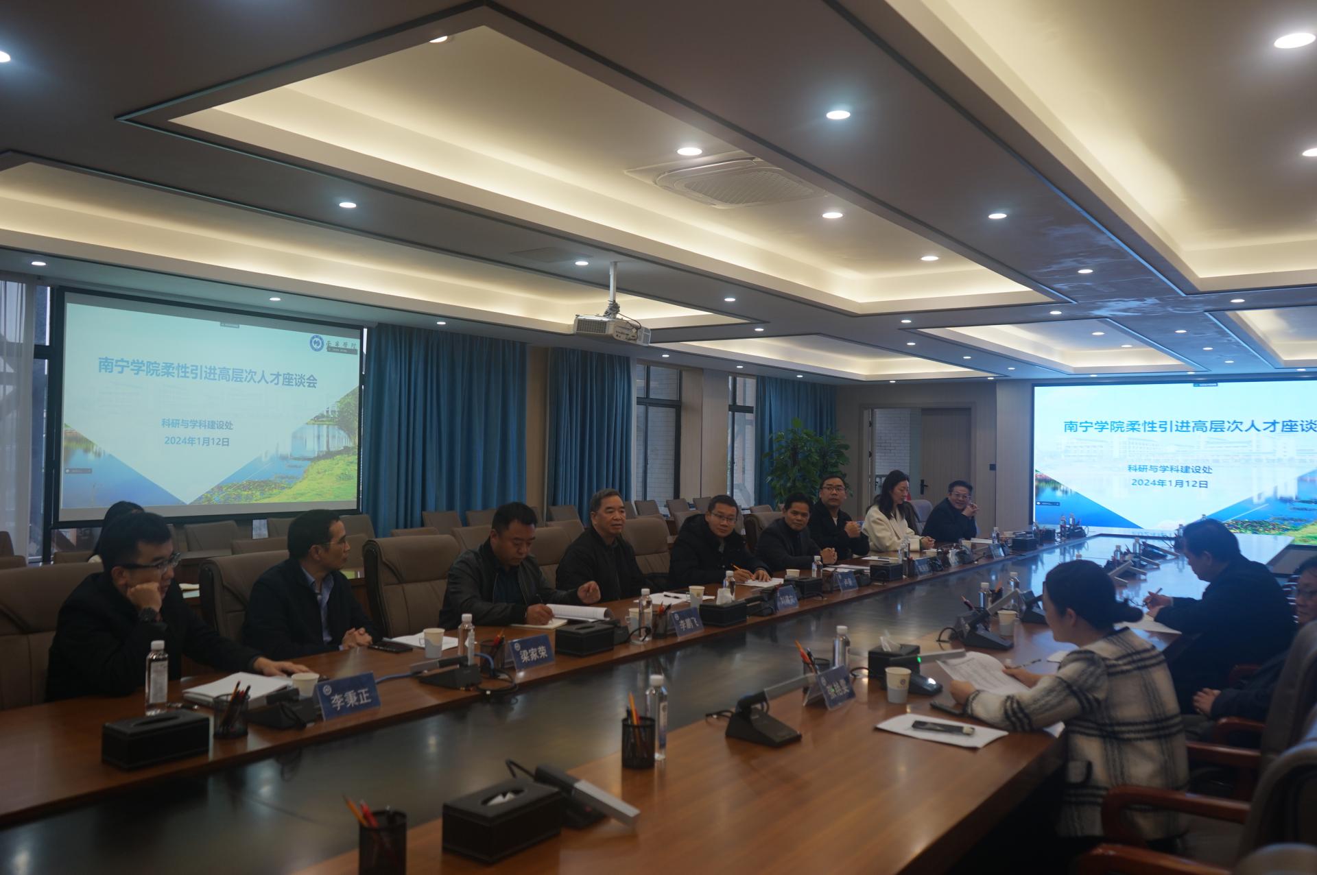 2024年1月12日下午,为加强学校与校内柔引进高层次人才进行深入交流,实现硕点与学科建设的关键性指标与国家级项目的重大突破,南宁学院召开2024年柔性引进高层次人才座谈会,与学校的柔引进高层次人才会商学校科研与学科建设的重要事宜。本次座谈会由科研与学科建设处张艳雯处长主持,李陶深副校长、各二级学院柔性引进高层次人才参加。
