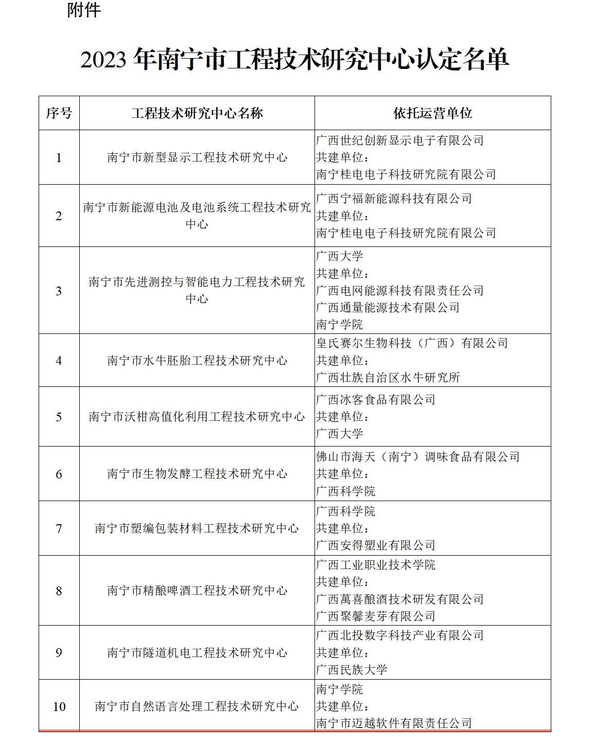 近日,南宁市科技局公布了《关于认定2023年度南宁市工程技术研究中心的通知》(南科通〔2024〕8号),由南宁学院人工智能与软件学院为依托单位,南宁市迈越软件有限责任公司为共建单位组建的南宁市自然语言处理工程技术研究中心在激烈的竞争中脱颖而出,成功获得2023年南宁市工程技术研究中心认定。