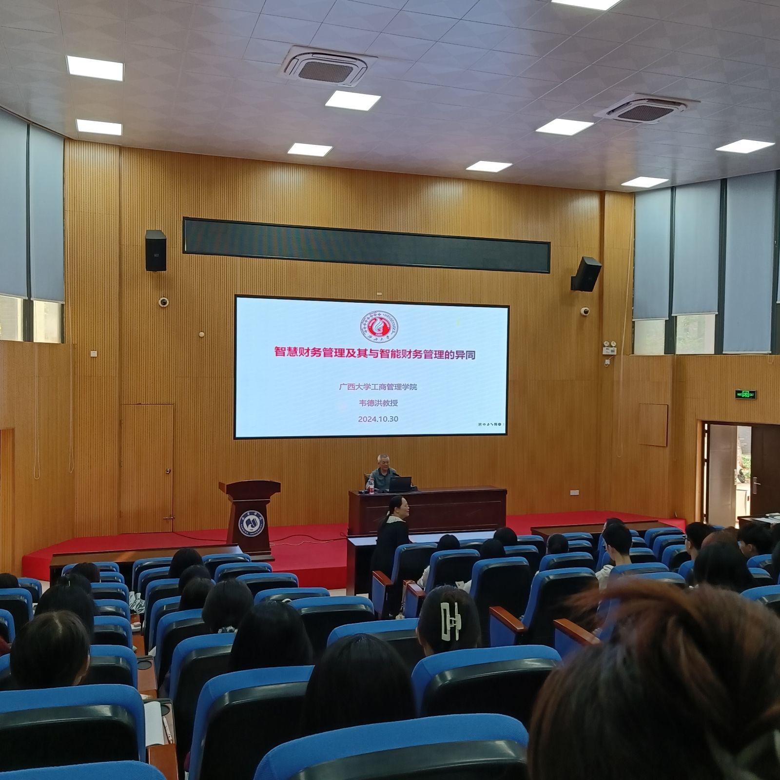 2024年10月30日下午3时许,南宁学院第95期“邕水敷文”学术讲座在敷文园A108开展,本次学术讲座商学院财务管理教研室为应届毕业生及老师邀请到的专家是来自广西大学的韦德洪教授,讲座主题为《智慧财务管理及其与智能财务管理的异同》。韦德洪教授,曾任广西大学工商管理学院财务与会计系三级教授、硕士研究生导师、广西大学商学院财务与会计系系主任、广西大学会计学硕士点、财务管理学硕士点、会计硕士专业学位点负责人。曾兼任广西会计学会副秘书长、广西审计学会副秘书长、广西会计硕士专业学位教育指导委员会副主任委员。