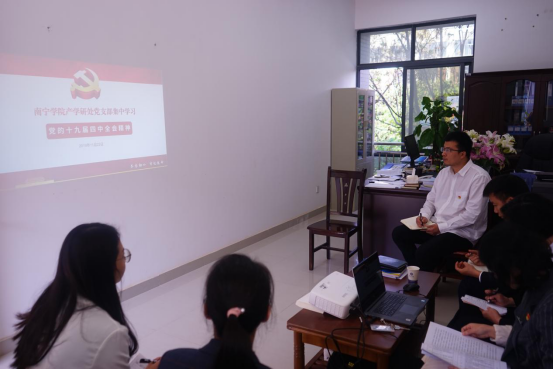 11月21日下午,产学研处党支部组织全体党员在行政楼238室开展第十九届四中全会精神专题学习会,由党支部书记韦平同志主持。