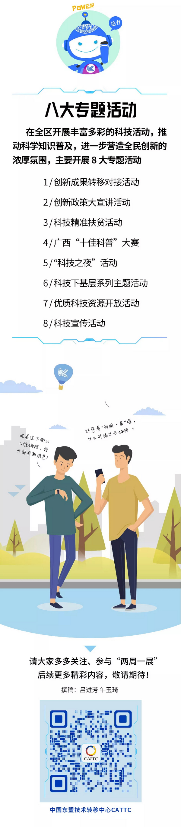 除了7大展区,全区还将开展丰富多彩的科技活动,推动科学知识普及,进一步营造全民创新的浓厚氛围。主要开展的8大专题活动有:创新成果转移对接活动、创新政策大宣讲活动 、科技精准扶贫活动、广西“十佳科普”大赛、“科技之夜”活动、科技下基层系列主题活动、优质科技资源开放活动、科技宣传活动 。