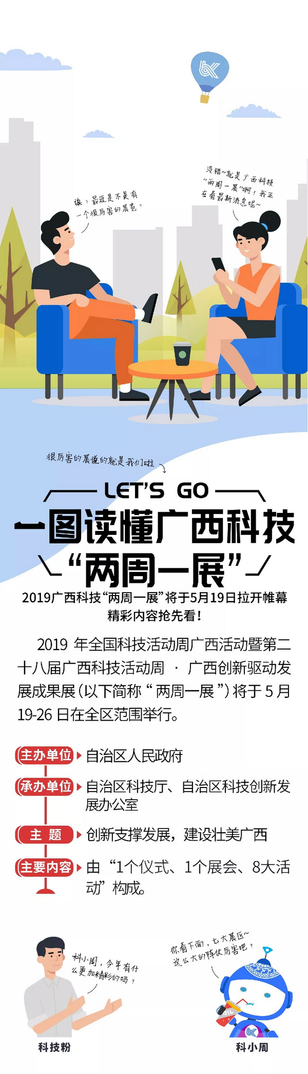 5月19日至26日,广西将举办一场科技盛会——2019年全国科技活动周广西活动暨第二十八届广西科技活动周·广西创新驱动发展成果展(以下简称“两周一展”),盛情邀请来自世界各地的科技爱好者前来观展。