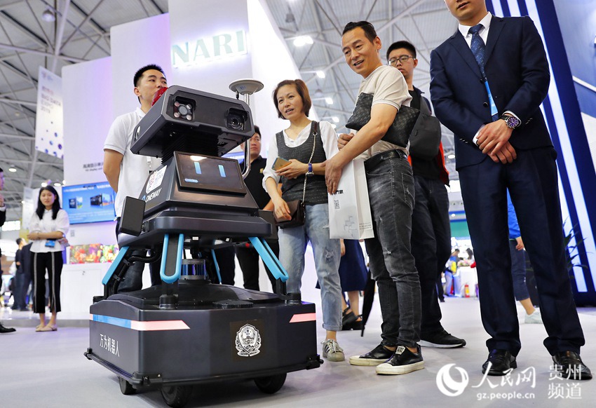 人民网贵阳5月26日电(刘敏 罗嘉)全球首款商用手机SoC芯片华为麒麟980,曾参与西昌森林火灾救援的无人机高空基站,可实现人脸识别、一键报警的安保巡逻机器人“小安”……5月26日,2019中国国际大数据产业博览会(简称“数博会”)上,各展馆内的大数据智能化的科技产品引来观展者们的围观互动。