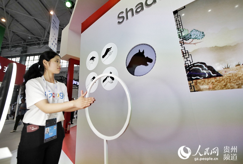 数博会W1馆内,通过手势识别的“影子艺术”。罗嘉 摄