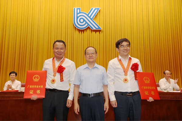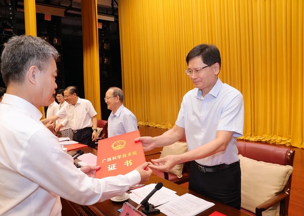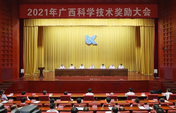 7月30日,2021年广西科学技术奖励大会在南宁举行。自治区党委书记、自治区人大常委会主任鹿心社出席大会,自治区党委副书记、自治区主席蓝天立在会上讲话,并共同为获奖代表颁奖。