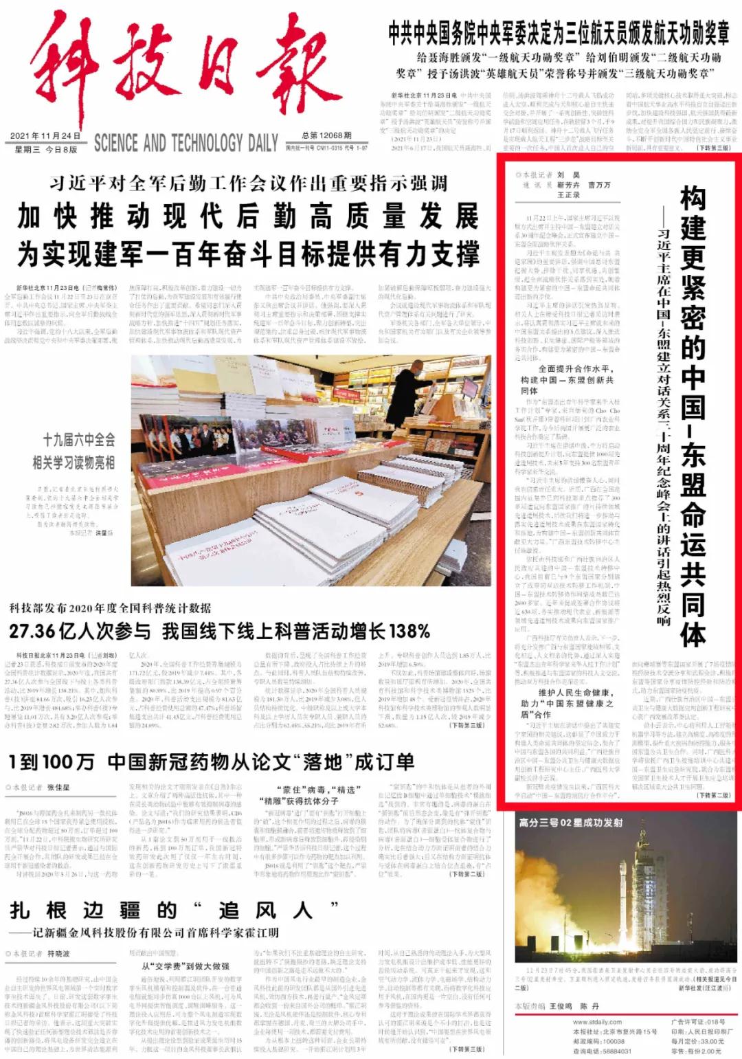 习近平主席的讲话引发热烈反响。相关人士在接受科技日报记者采访时表示,将认真贯彻落实习近平主席就未来的中国东盟关系提出的5点建议,深入推进科技创新、卫生健康、国际产能等领域的务实合作,构建更为紧密的中国-东盟命运共同体。
